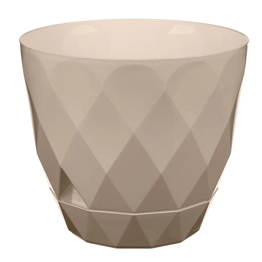 - Стильная и минималистичная рельефная фактура, напоминающая огранку драгоценного камня, и спокойный базовый цвет помогут гармонично вписать горшок в домашний интерьер