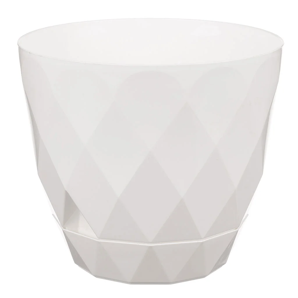 - Стильная и минималистичная рельефная фактура, напоминающая огранку драгоценного камня, и спокойный базовый цвет помогут гармонично вписать горшок в домашний интерьер