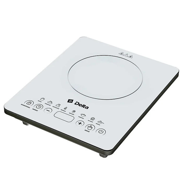 Плита индукционная 2000 Вт одноконфорочная, 8 программ, LED-дисплей, стеклокерамика DELTA D-302N белая