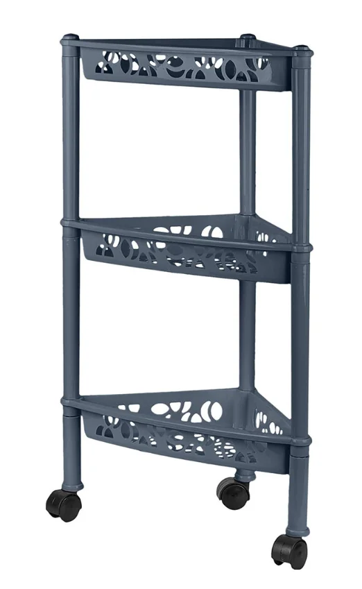 Этажерка на колесиках пластиковая трехсекционная угловая - это эффективное и недорогое решение для организации хранения в небольших помещениях, на кухне, в ванной, на балконе или лоджии, в кладовой или на даче