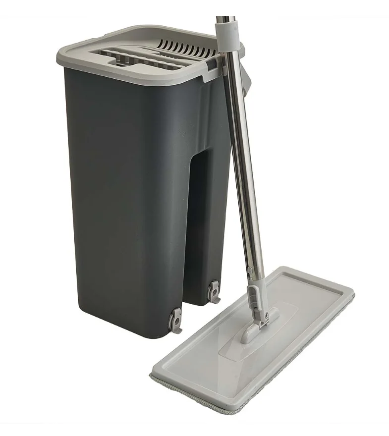 - Стильный и функциональный комплект для влажной уборки - это швабра с четырехсоставной разборной рукояткой и насадкой из микрофибры, и ведро с двумя отсеками - емкостью для полоскания и камерой для отжима