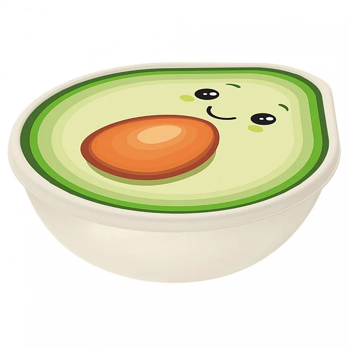 - Очаровательный персонаж-авокадо на крышке и донышке контейнера внутри наносится с помощью технологии IML и вплавляется в изделие на этапе литья, благодаря чему не стирается и долго радует глаз