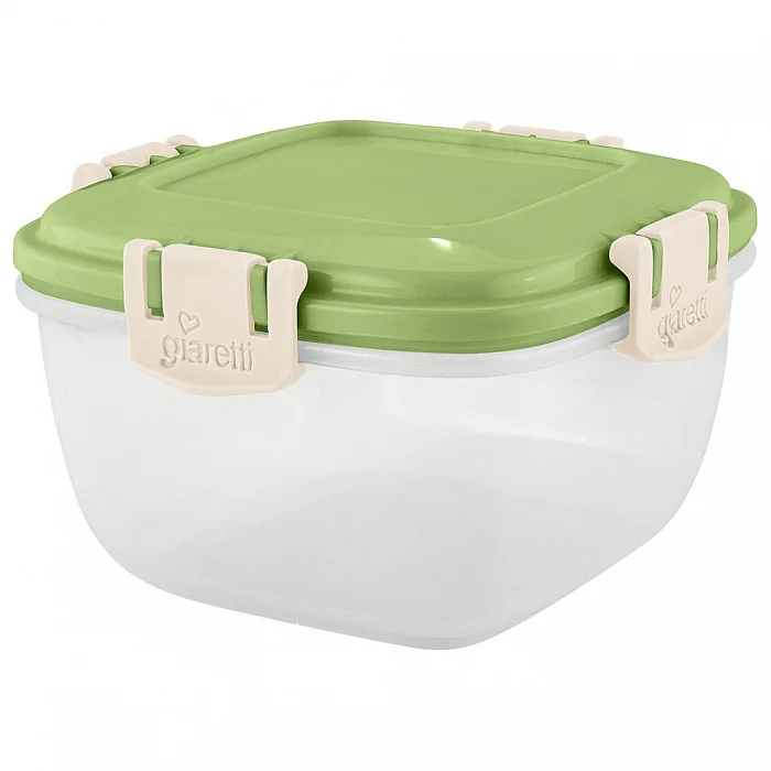 - Крышка с четырьмя защелками и силиконовым уплотнителем обеспечивает герметичность и позволяет продуктам дольше оставаться свежими