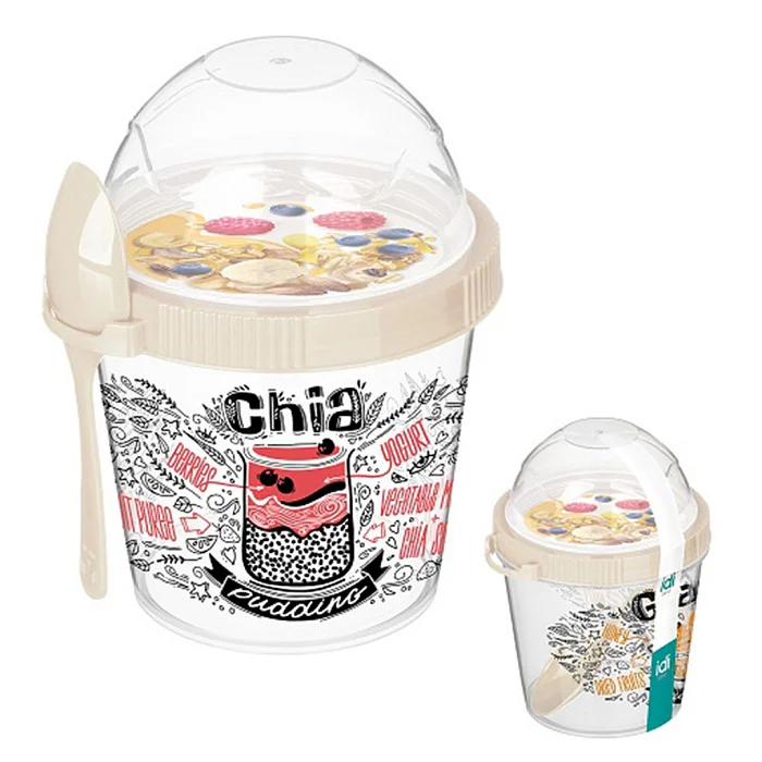 - Удобный стакан объёмом 450 мл предназначен для основы вашего блюда, а пластиковая крышечка-ёмкость – для топпинга