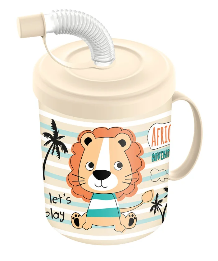 Кружка детская с крышкой, трубочкой и колпачком 300 мл "Львенок" (светло-бежевый) 221502025/01