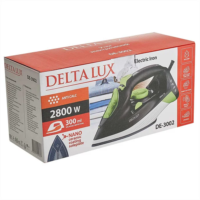 Утюг электрический 2800 Вт DELTA LUX DE-3002 черный с зеленым