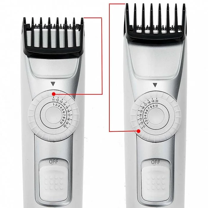 - Регулировка длины волос от 1 до 20 мм (40 фиксируемых установок длины с шагом 0,5 мм)