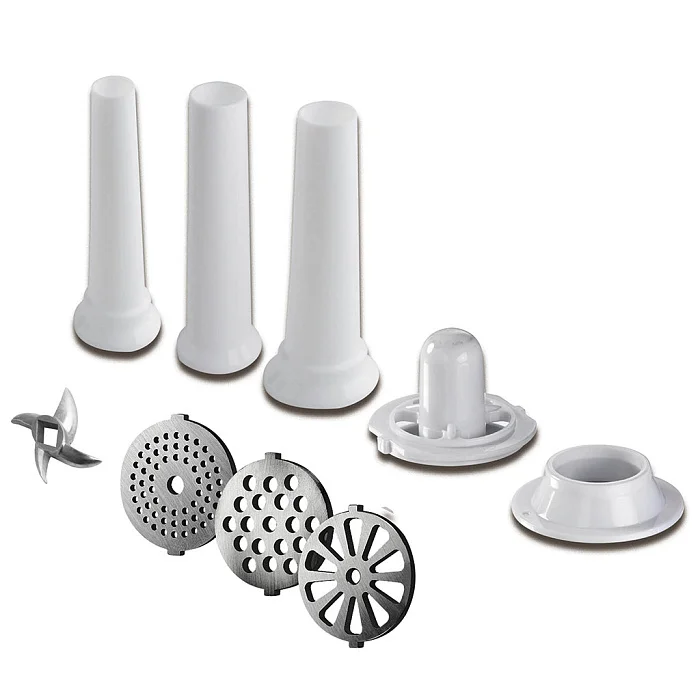 - Три решетки из нержавеющей стали для измельчения и рубки с отверстиями различного диаметра