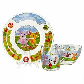 - Набор детской посуды из высококачественного бесцветного стекла с изображениями персонажей популярного мультфильма