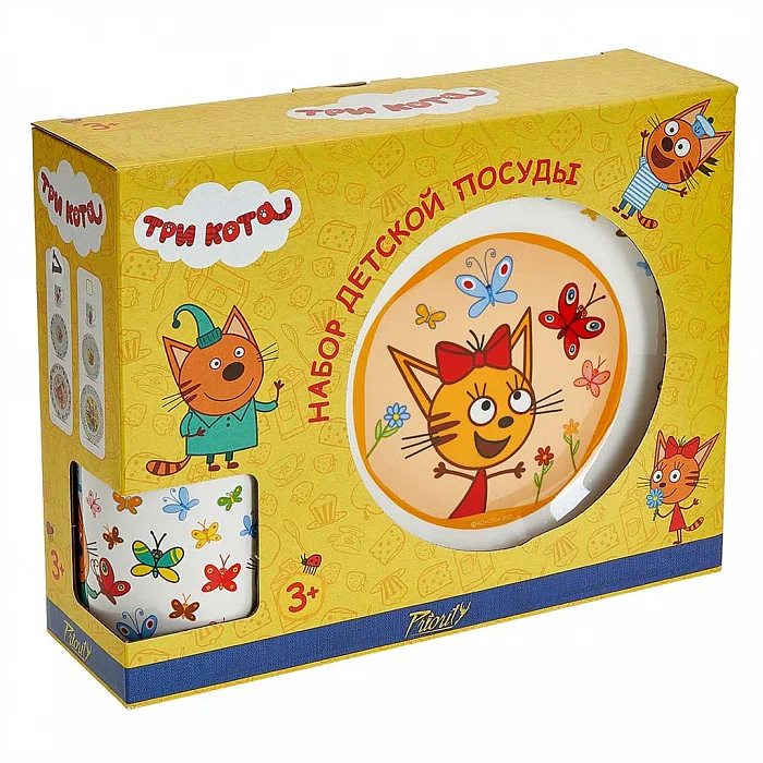 Набор посуды 3 предмета детский КРС-1781 Три кота. Бабочки (фарфор)