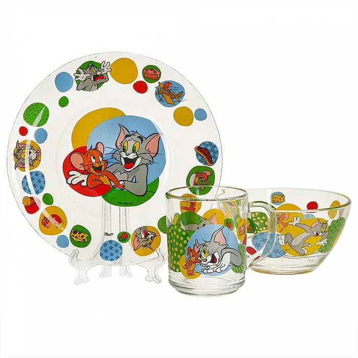 Набор посуды 3 предмета детский КРС-1804 Том и Джерри (стекло)
