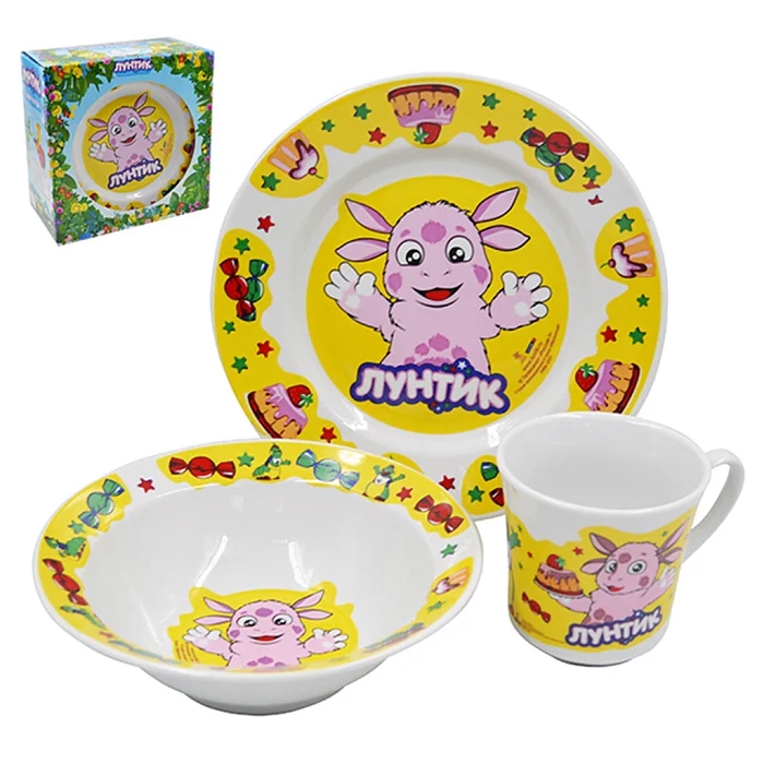 - Набор детской посуды из высококачественного фарфора с изображениями популярных персонажей