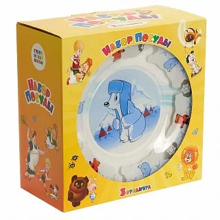 - Набор детской посуды из высококачественного бесцветного стекла с изображениями персонажей популярного мультфильма