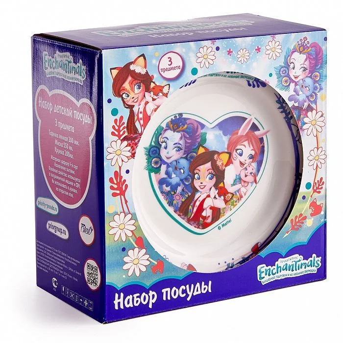 - Набор детской посуды из высококачественного фарфора с изображениями персонажей популярного мультфильма