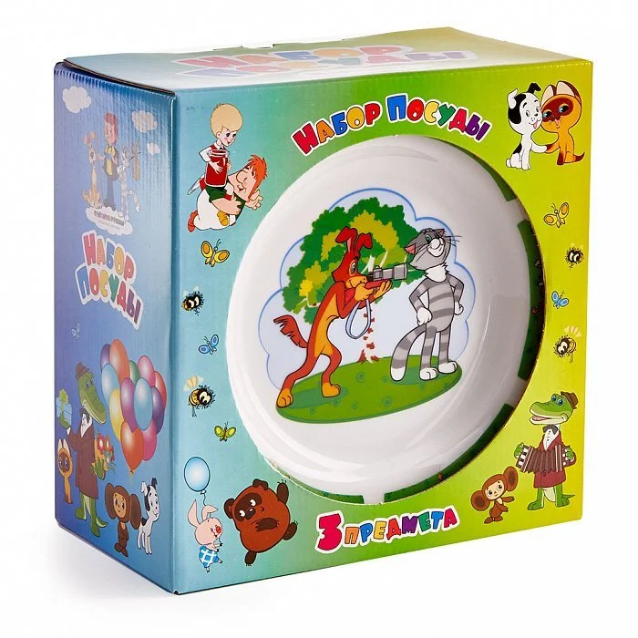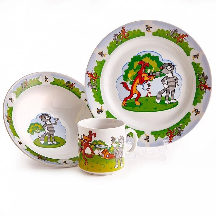 - Набор детской посуды из высококачественного фарфора с изображениями персонажей популярного мультфильма