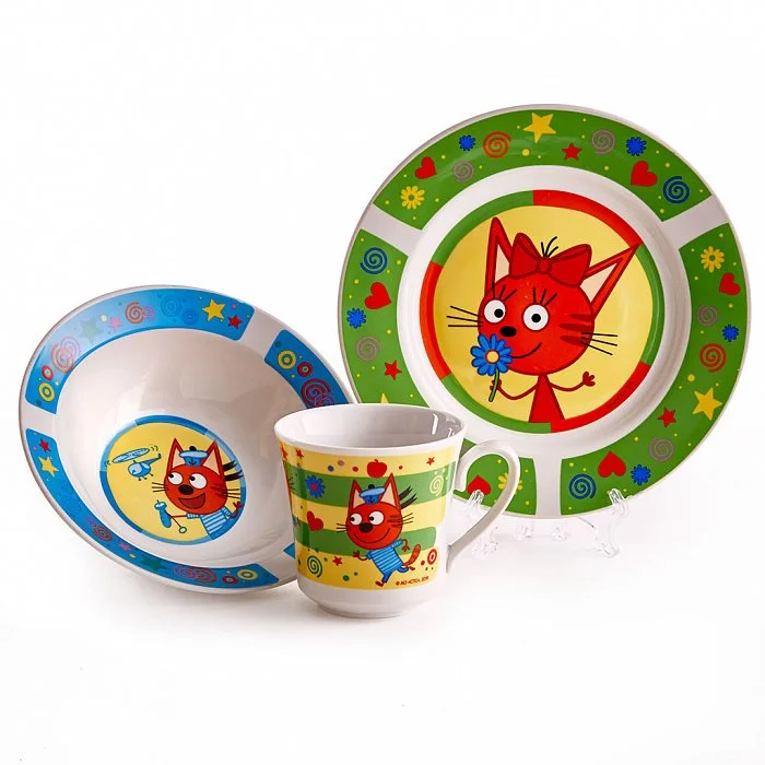 - Набор детской посуды из высококачественного фарфора с изображениями персонажей популярного мультфильма