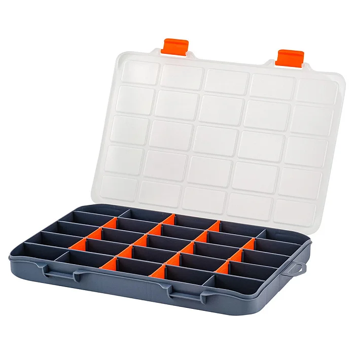 - Внутреннее деление на отсеки делает удобным размещение внутри органайзера деталей, которые необходимо отделить друг от друга