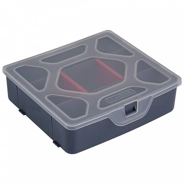 - Внутреннее деление на отсеки делает удобным размещение внутри органайзера деталей, которые необходимо отделить друг от друга