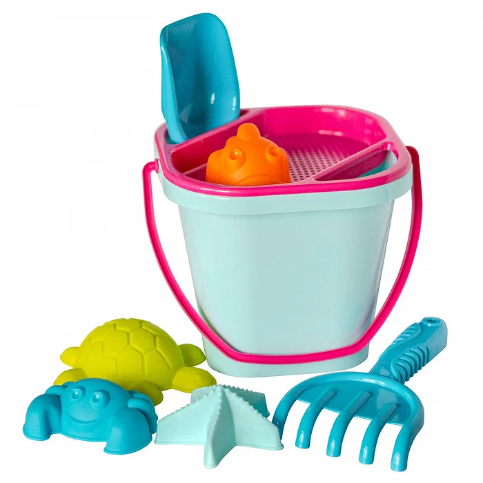 - Когда игра закончена, формочки, совок и грабельки для игры с песком легко складываются внутрь ведерка - набор легко хранить, он не занимает много места