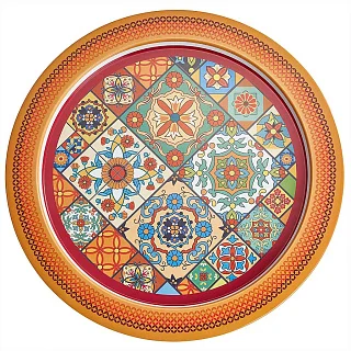 Поднос жестяной круглый 379 мм Времена года оранжевый Ц-379х-01972
