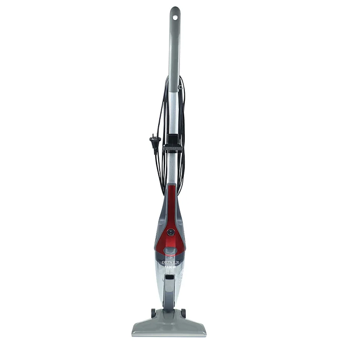 Пылесос 2 в 1: вертикальный + съемный ручной, без мешка для сбора пыли, ЦИКЛОН, 1100 Вт DELTA LUX DE-3503 серый с красным