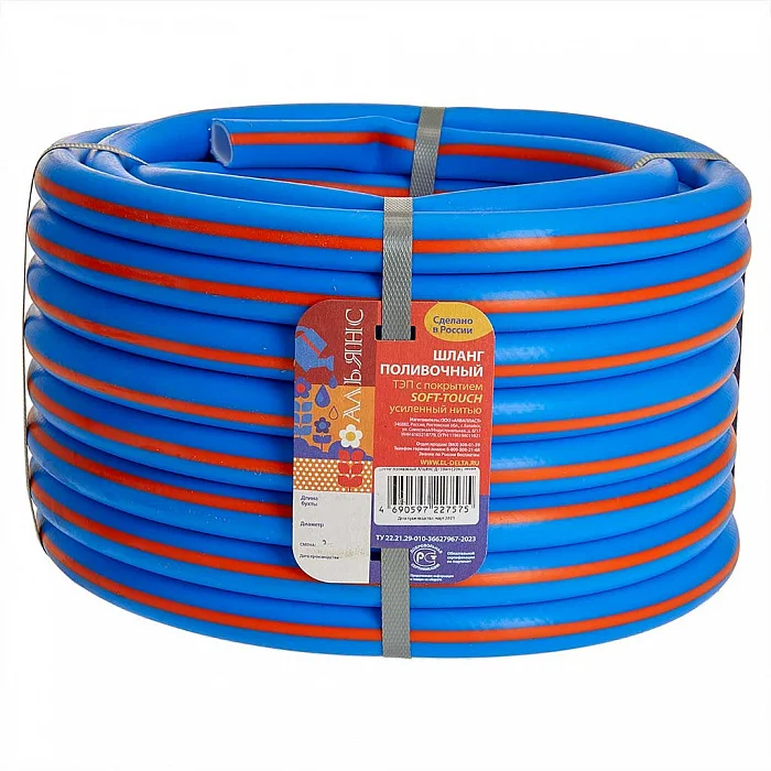 - Шланг поливочный ТЭП с покрытием Soft-touch, усиленный нитью