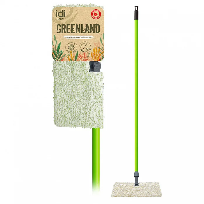 - Швабра имеет двустороннюю насадку в природных зелёных оттенках