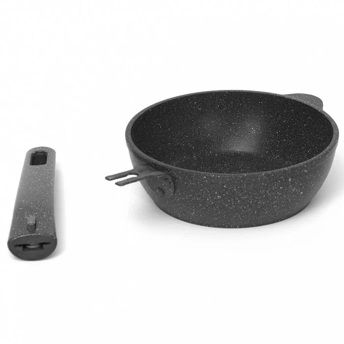 - Сковорода литая алюминиевая со съемной ручкой, утолщенным дном, трехслойным антипригарным покрытием