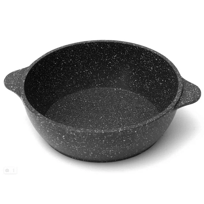 - Сковорода литая алюминиевая с 2-мя литыми ручками, утолщенным дном, трехслойным антипригарным покрытием