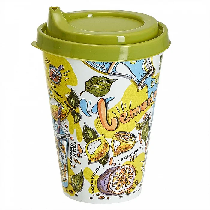 Стакан 420 мл для напитков с крышкой и декором (салатовый) 221127820/01