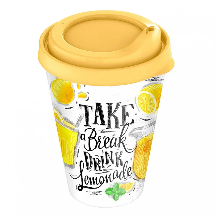 Стакан 420 мл IZI-GO с крышкой с декором СЛ (бледно-желтый) 221134004/01