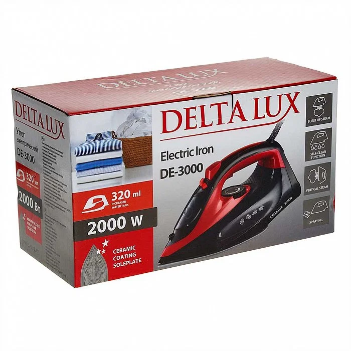 Утюг электрический 2000 Вт черный с красным Delta LUX DE-3000