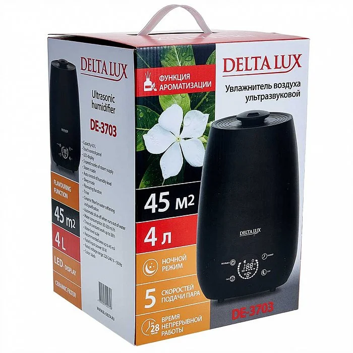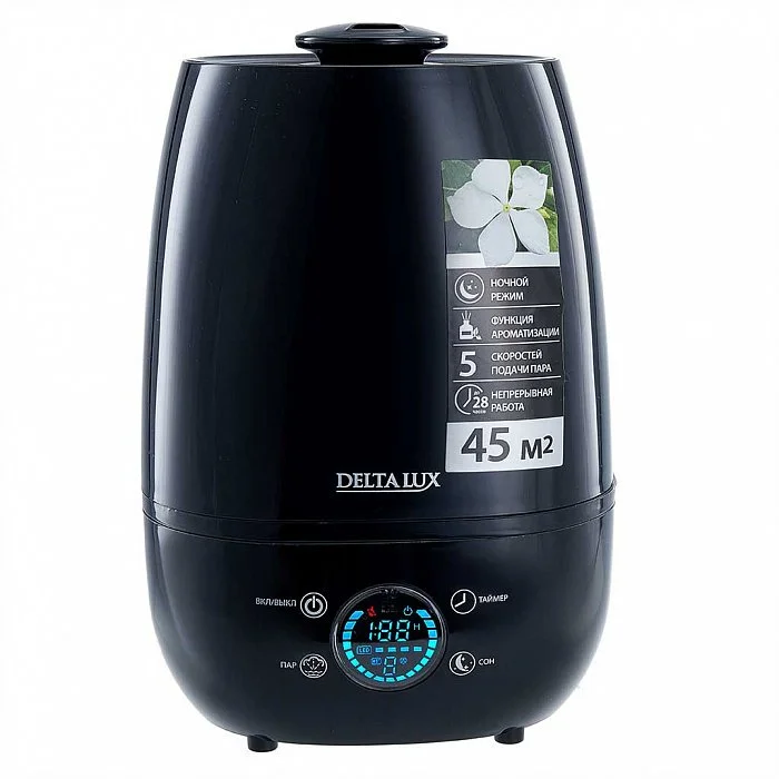 Увлажнитель воздуха ультразвуковой 30 Вт, 4 л, с керамическим фильтром Delta LUX DE-3703 черный