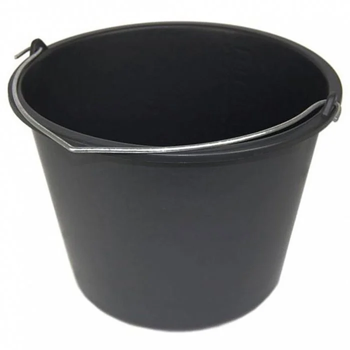 - Прочное и крепкое непищевое пластиковое ведро с толстыми стенками и металлической подвижной ручкой