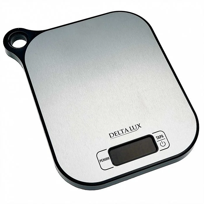 Весы кухонные Delta LUX DE-001KE нержавеющая сталь, с петелькой для подвешивания