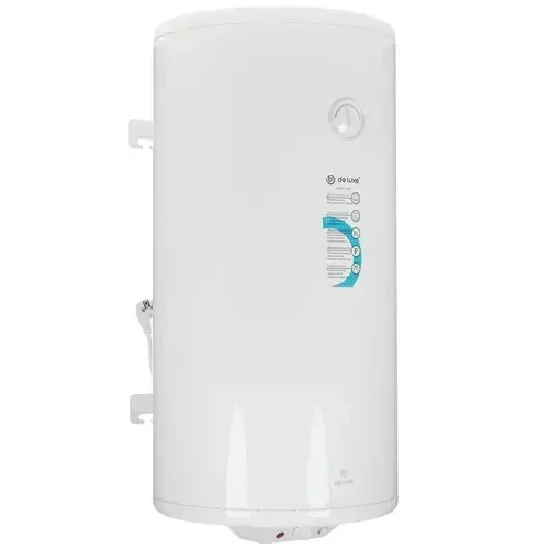 Электроводонагреватель DeLuxe W100VH1 — накопительная вертикальная модель белого цвета.