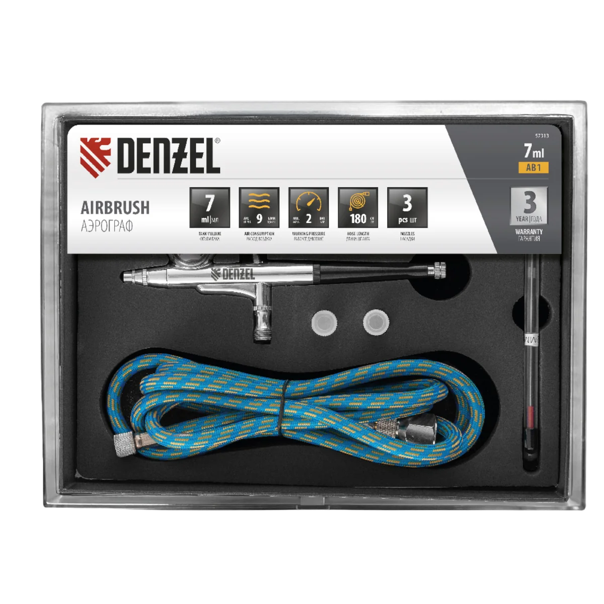 - Надежная упаковка — аэрограф поставляется в прочном кейсе с ложементом.