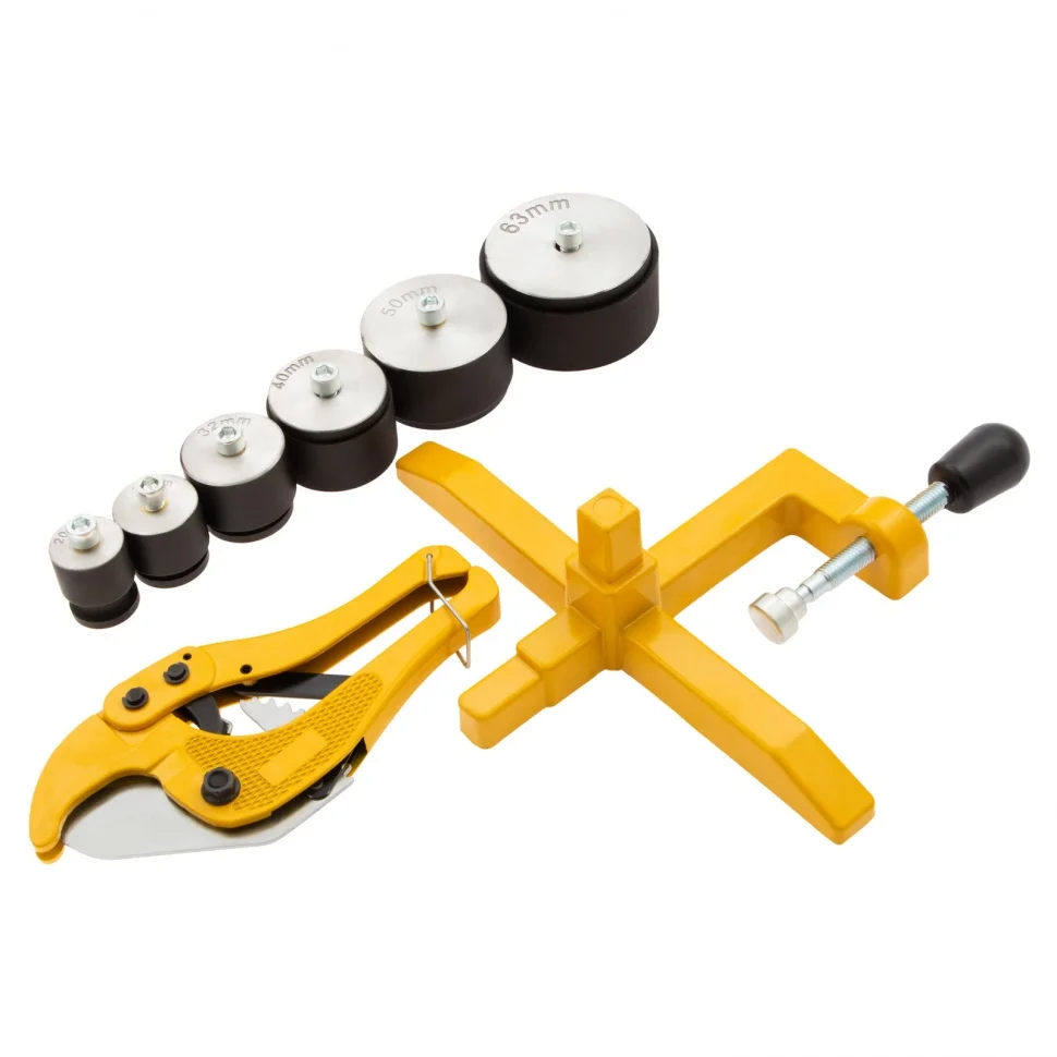 - Кроме насадок в комплект поставки включен труборез, шпильки крепления и шестигранный ключ. Такое решение экономит ресурсы пользователя на поиск аксессуаров.