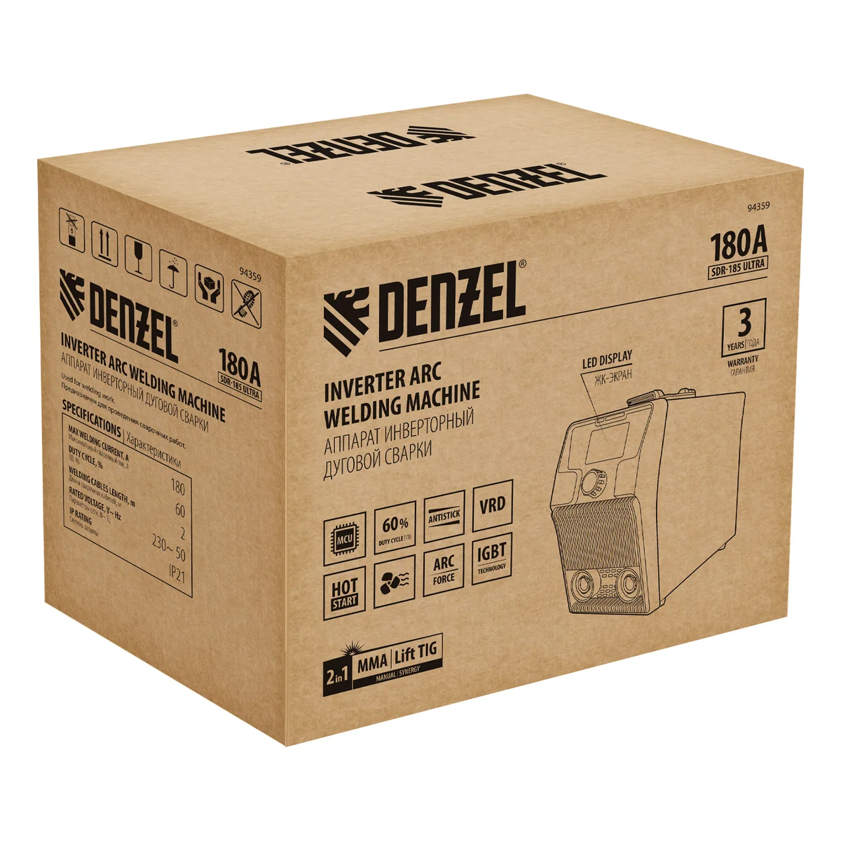 Аппарат инвертор. дуговой сварки SDR-185 Ultra, 180 А, ПВ 60% Denzel 94359