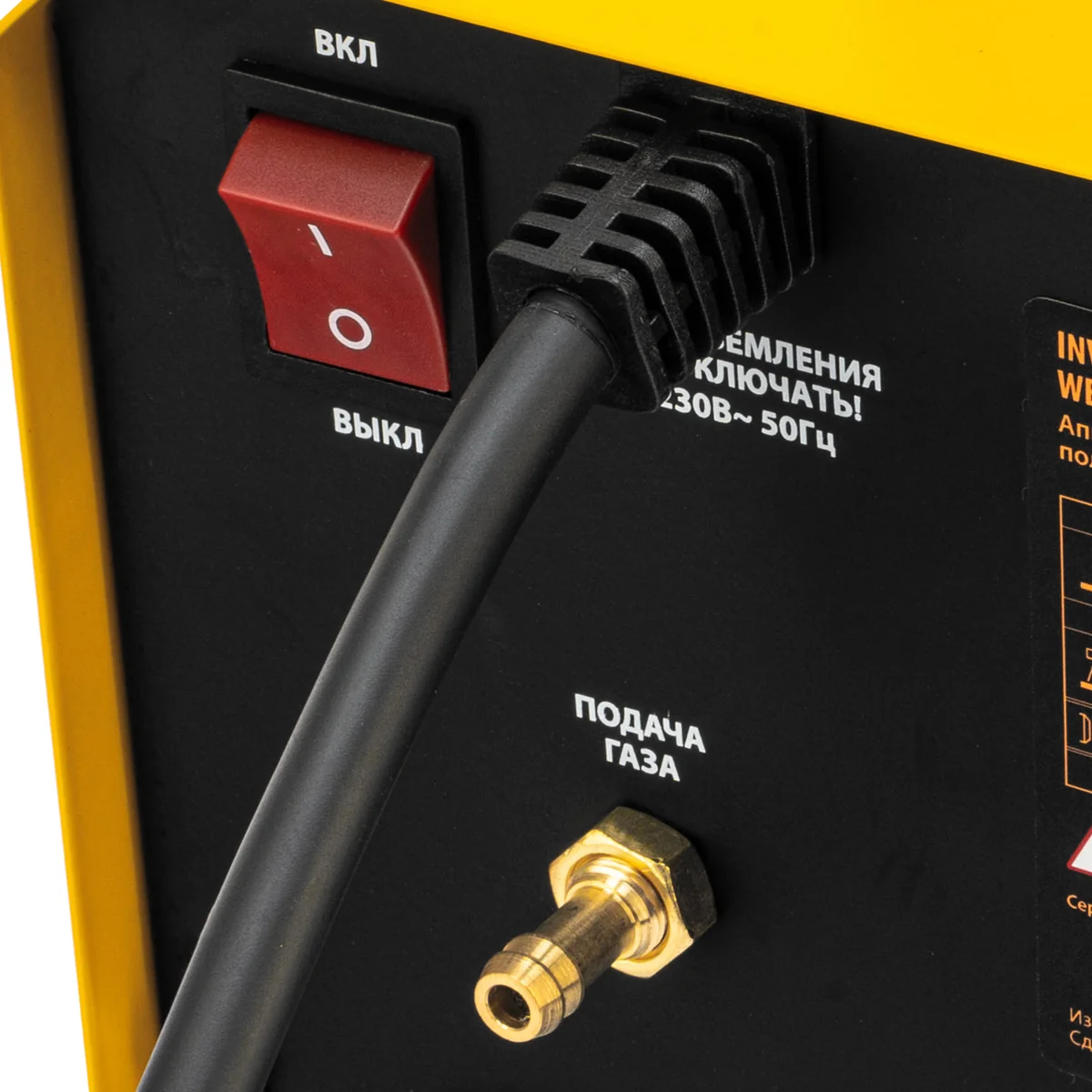 - Продуманная комплектация — аппарат поставляется с газовым шлангом и сварочными проводами (с электрододержателем и зажимом «земля»).