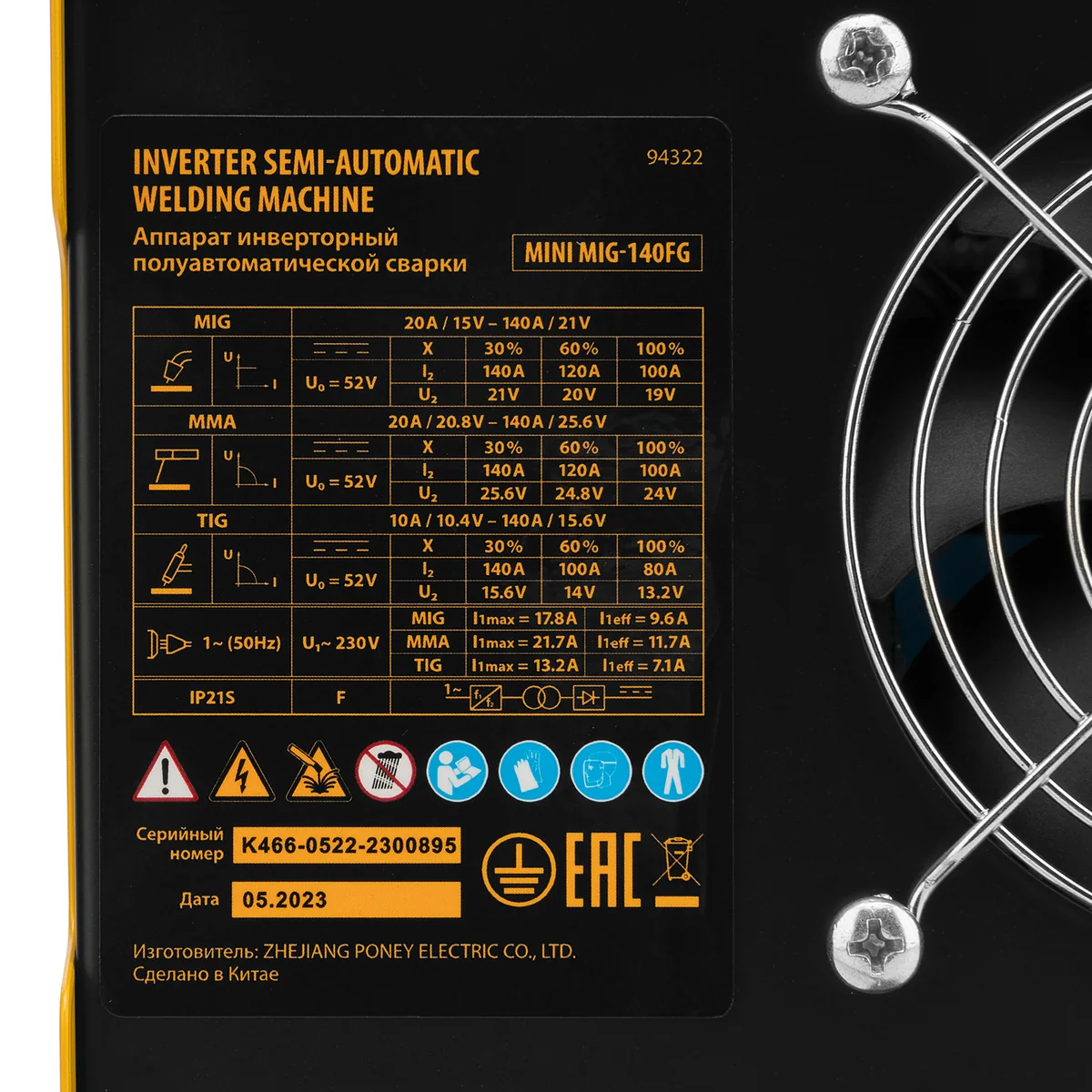 Аппарат инвертор. полуавтомат. сварки Mini MIG-140FG, 140 А, ПВ 60% Denzel 94322