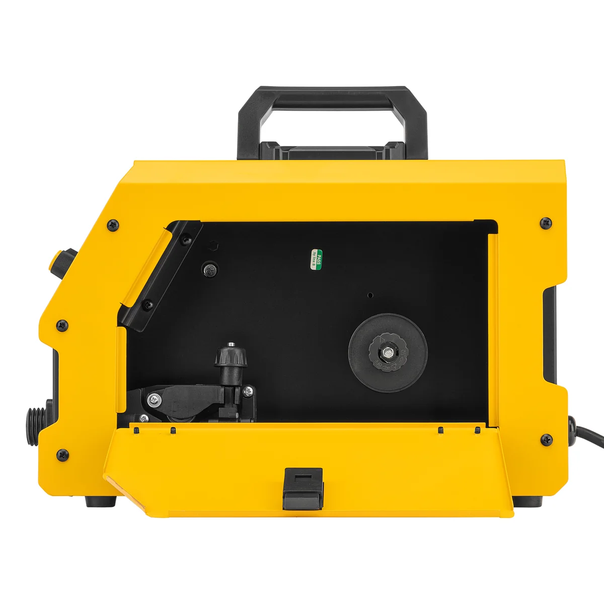 - Синергетическое управление — в режимах MIG и FCAW происходит автоматическая корректировка скорости подачи проволоки и напряжения сварочной дуги.