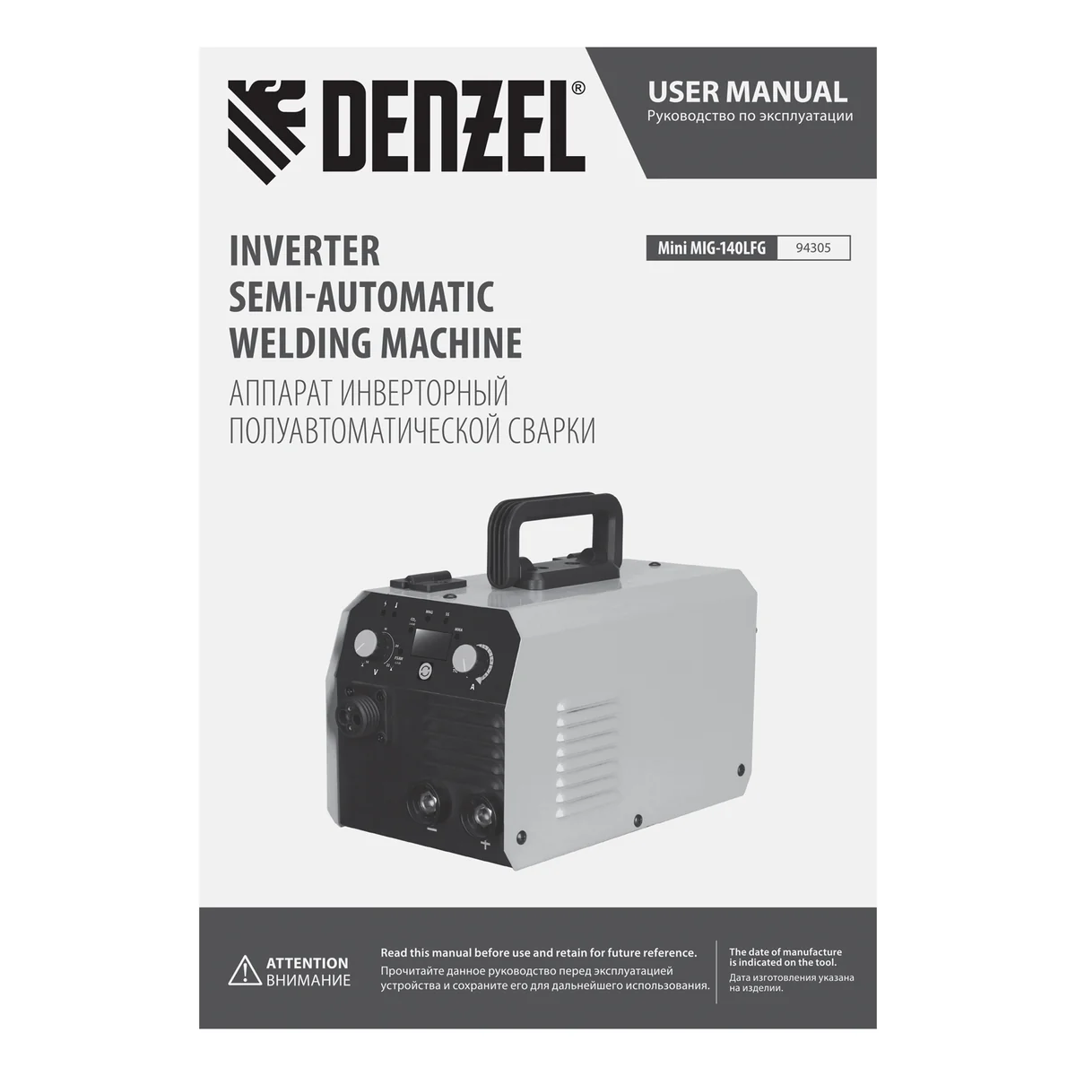 Аппарат инвертор. полуавтомат. сварки Mini MIG-140LFG, 140 А, ПВ 60% Denzel 94305