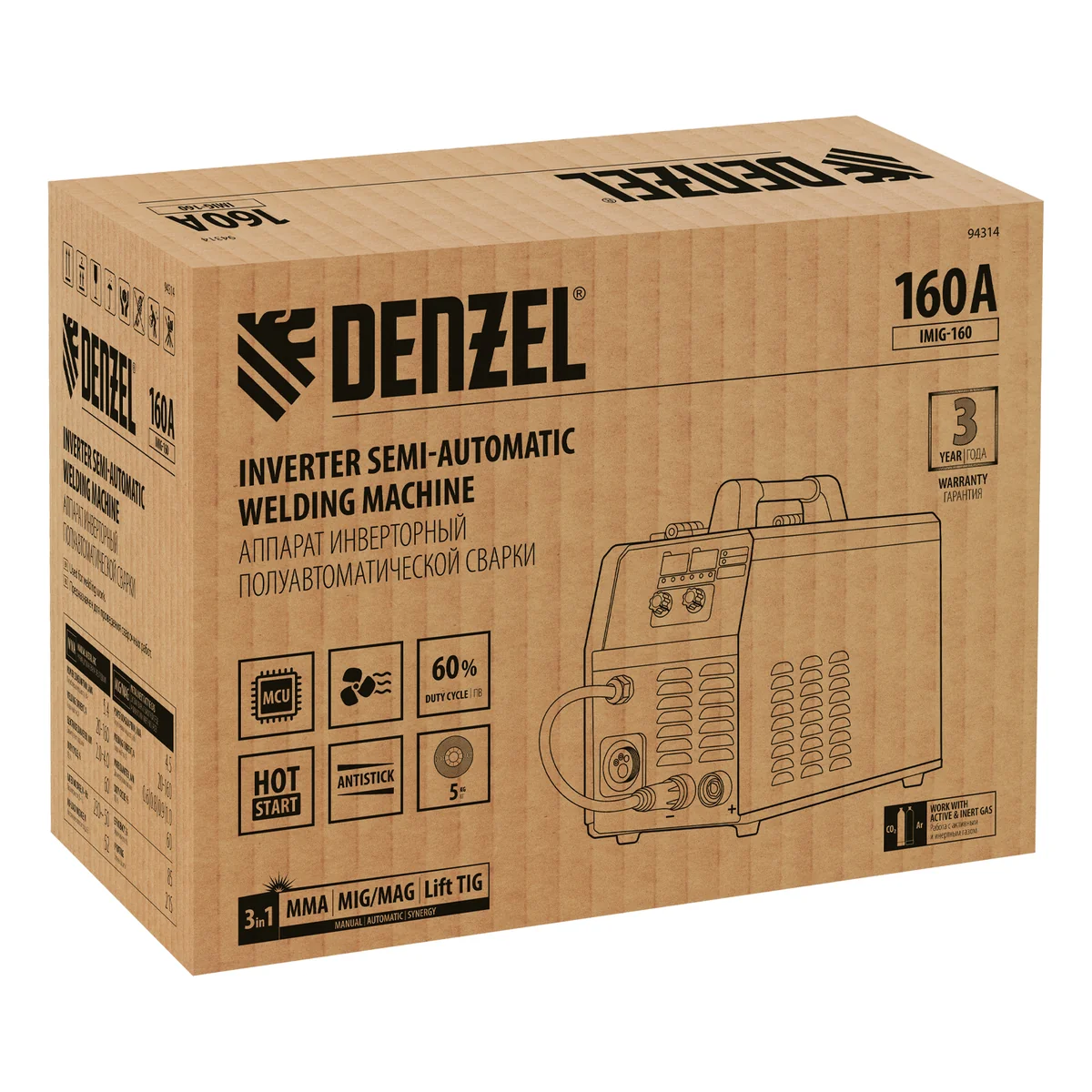 Аппарат инвертор. полуавтомат. cварки IMIG-160 Synergy, 160 А, ПВ 60%, катушка 5 кг Denzel 94314