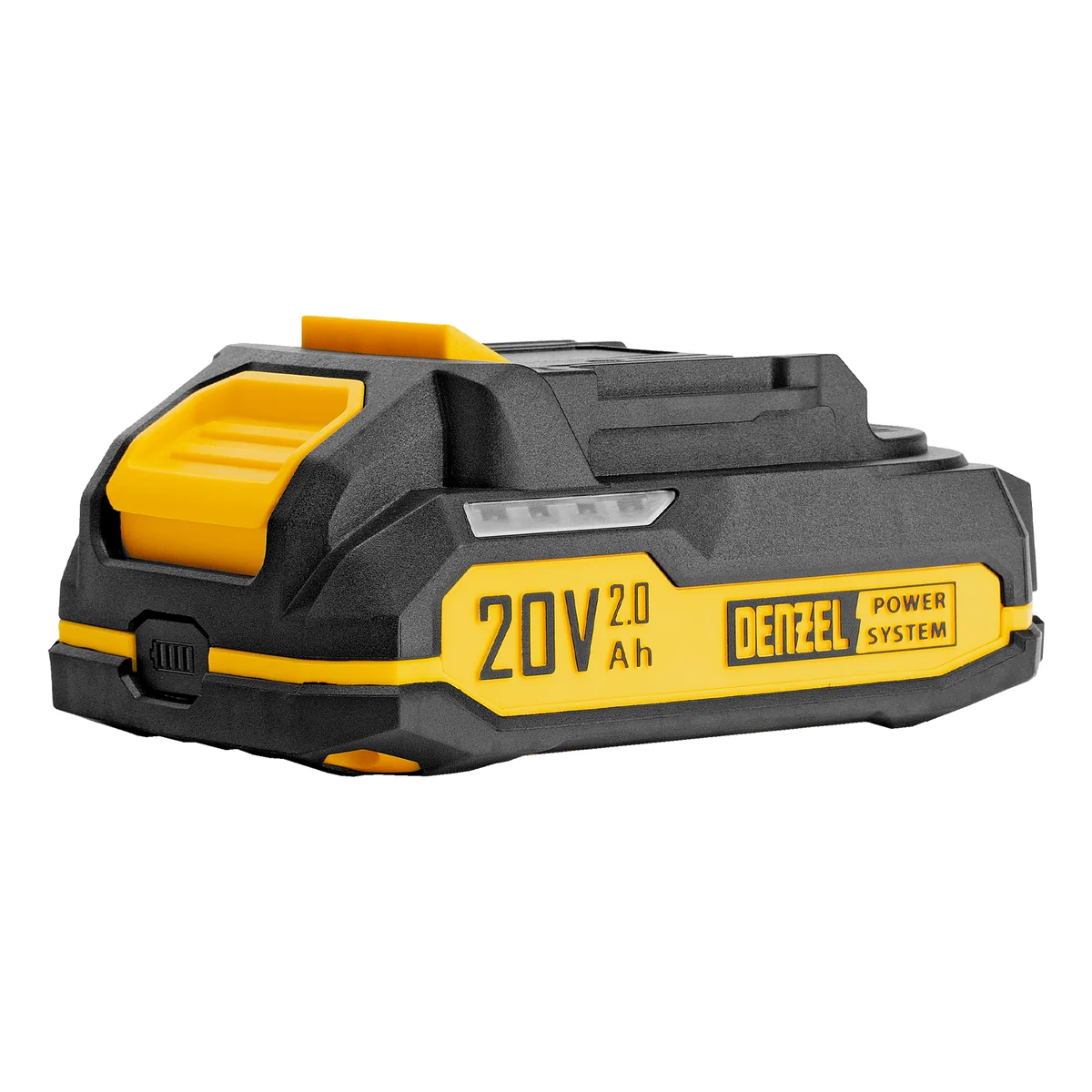 Батарея Li-Ion Denzel BH-20-2.0 28442 номинальным напряжением 20 В и емкостью 2,0 А·ч обеспечивает работоспособность аккумуляторного инструмента. Подходит для всех инструментов единой платформы Denzel Power System 20V.