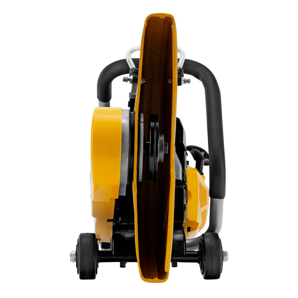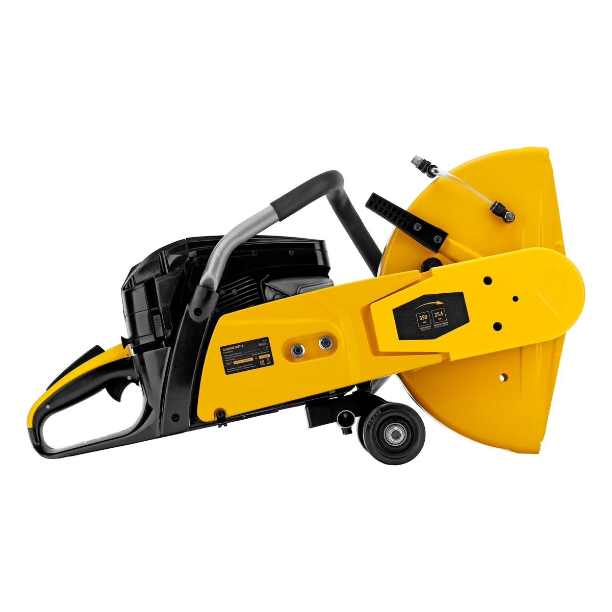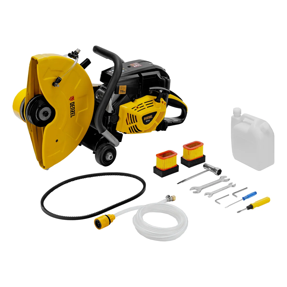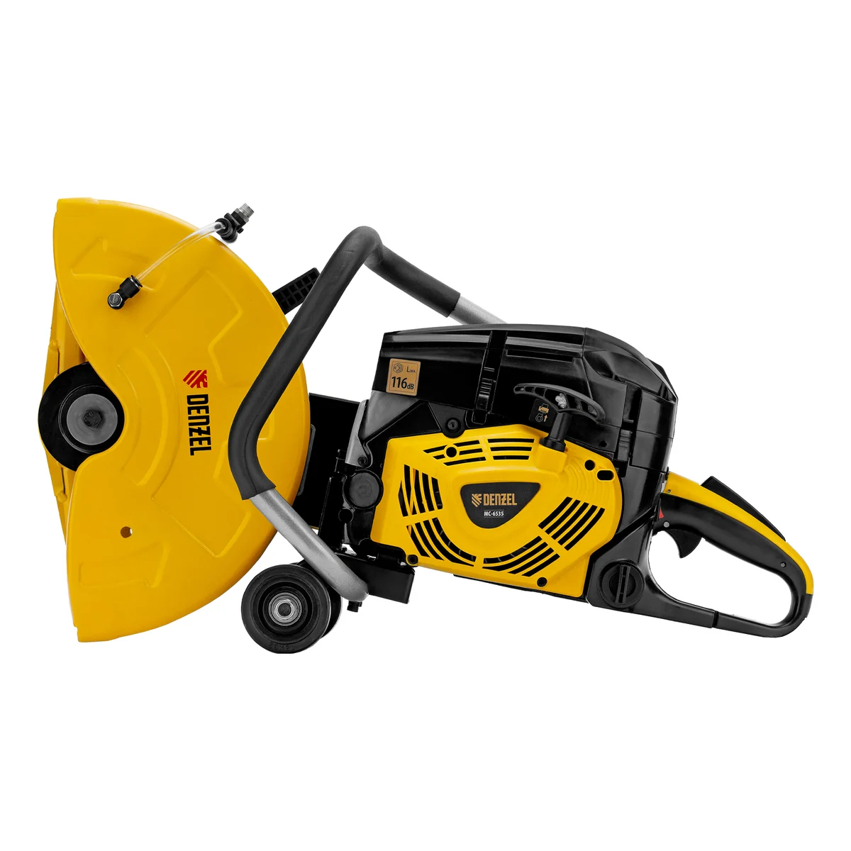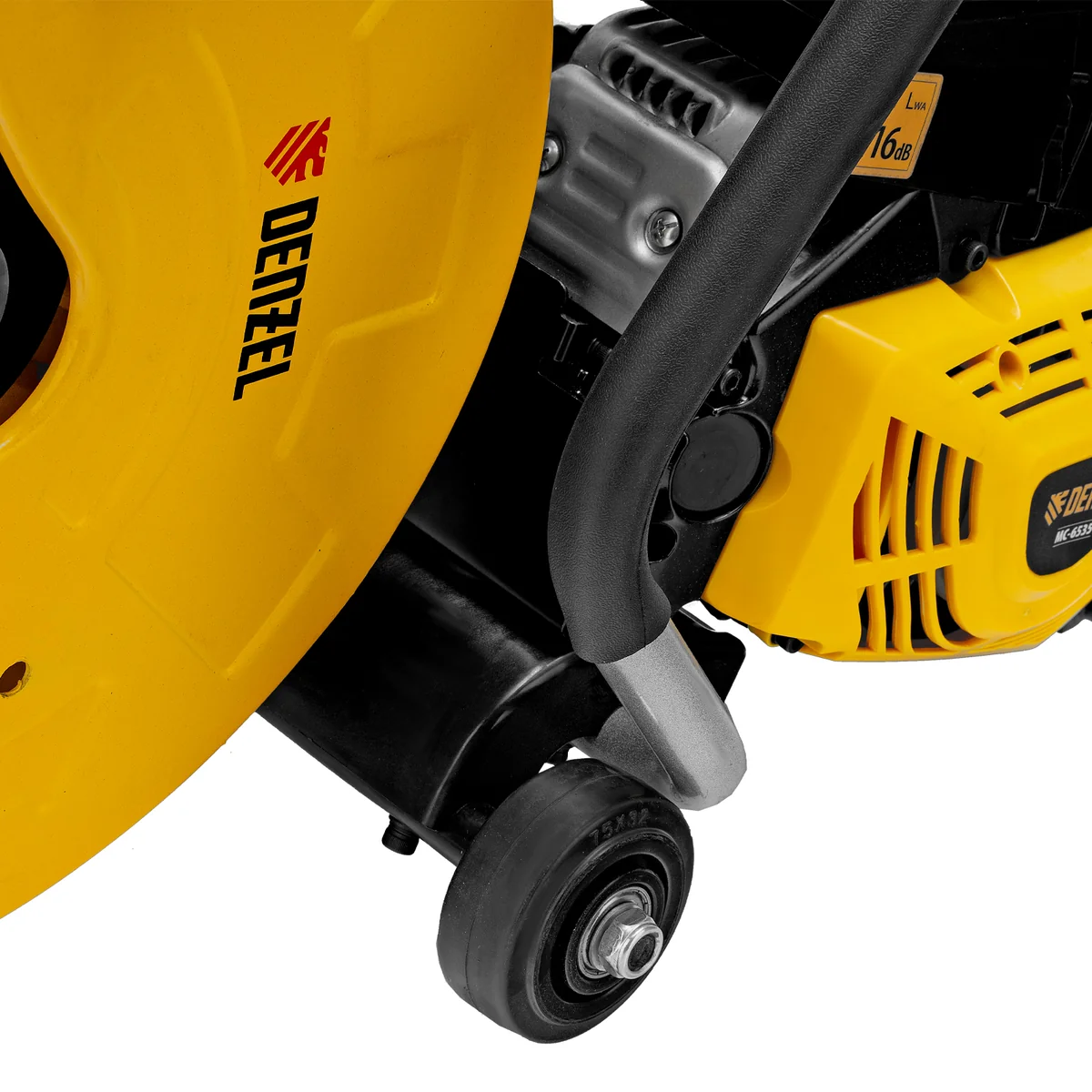 Бензорез Denzel MC-6535 66301 с двигателем объемом 65 см3 и мощностью 4,5 л. с. совместим с режущими дисками диаметром 350 мм и используется для демонтажа бетонных, металлических и каменных конструкций. Благодаря мощному двигателю успешно справляется с резкой твердых материалов. Инструмент пригодится на строительной площадке, также будет полезен во время проведения спасательных операций.
