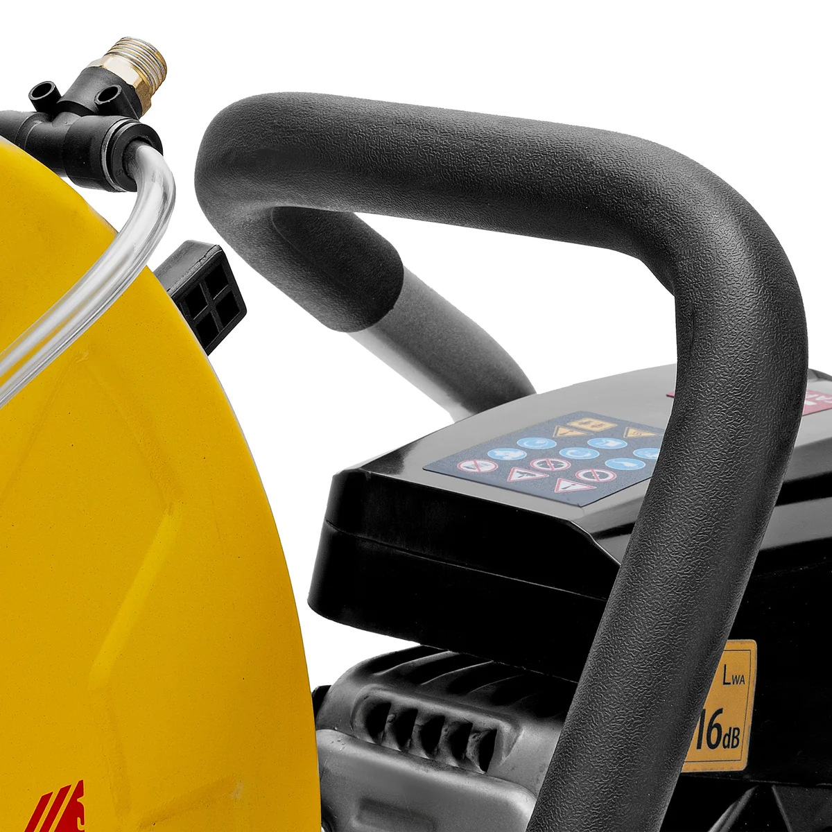- Решение широкого спектра задач — инструмент работает с алмазными, абразивными и зубчатыми дисками, поэтому подходит для резки бетона, асфальта, чугуна, алюминия, стали и других твердых материалов, а также пластика.