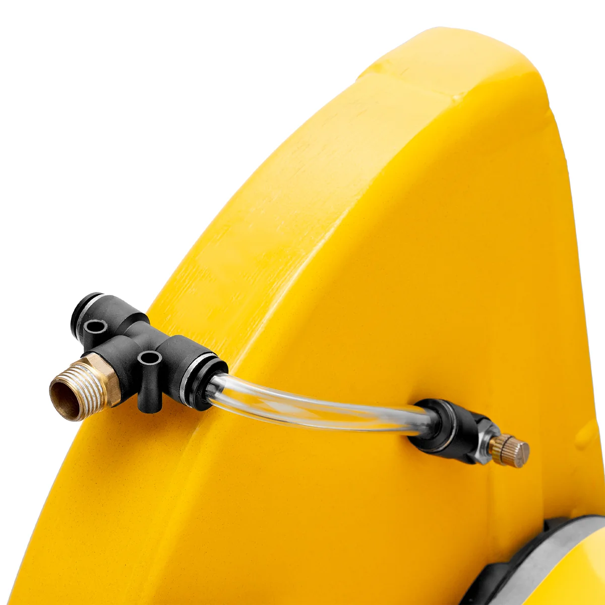 - Эффективная работа — бензорез оснащен системой подачи воды с универсальным штуцером, использование водяного охлаждения позволяет уменьшить количество образующейся пыли и снизить нагрузку на двигатель.