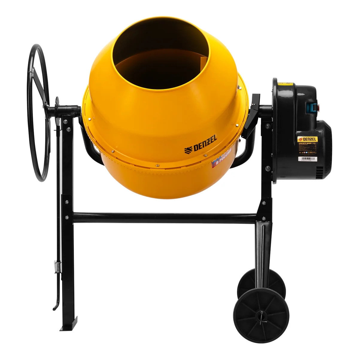 - Удобная транспортировка — колеса упрощают перемещение бетоносмесителя по строительной площадке.