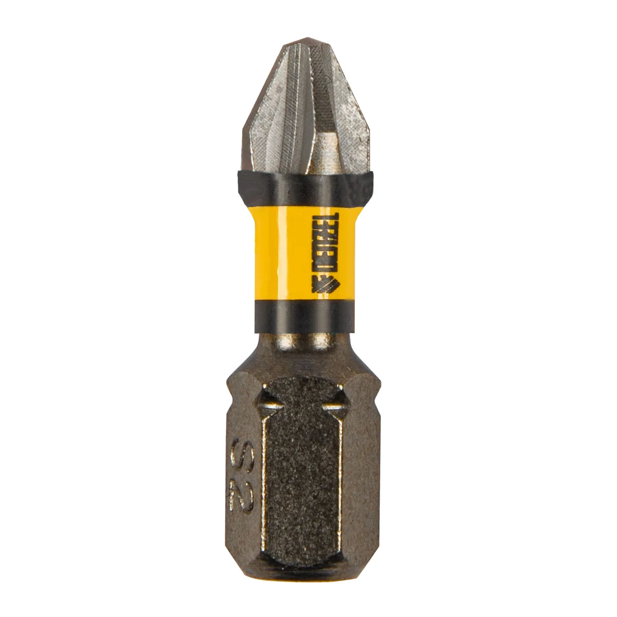 Набор бит торсионных PH2 x 25 мм Denzel 11685 с лазерной обработкой шлица, из стали S2, 10 шт., предназначен для монтажа и демонтажа резьбовых соединений с помощью ударного шуруповерта. Он незаменим в строительных, слесарных и монтажных работах, в автосервисах, при проведении ремонта в доме.Торсионная зона способна пружинить, за счет чего она частично амортизирует тангенциальный удар от шуруповерта. Такое решение позволяет равномерно распределить нагрузку по бите, избежать поломки шлица и в разы увеличить объем работы, проделанный одной насадкой.ПреимуществаПродуманная конструкция — торсионная зона позволяет работать ударным шуруповертом даже с особо твердыми поверхностями без риска поломки бит.Высококачественный материал изготовления — японская легированная сталь S2 обеспечивает устойчивость бит к износу и увеличивает их ресурс.Износостойкость — биты закалены до твердости 62 HRC, что повышает сопротивляемость к деформации при высоких нагрузках.Надежная фиксация — шлицы бит намагничены, поэтому крепеж не выпадет, а мастер сможет свободной рукой придерживать закрепляемый материал.Антикоррозионные свойства — никелированное покрытие увеличивает срок службы насадок.Защита от подделок — синее кольцо с логотипом ТМ Gross подтверждает оригинальность товара.Удобное хранение — насадки поставляются в блистере с европодвесом, который можно вешать на стенд.10 бит в комплекте — набора хватит на небольшую производственную бригаду.